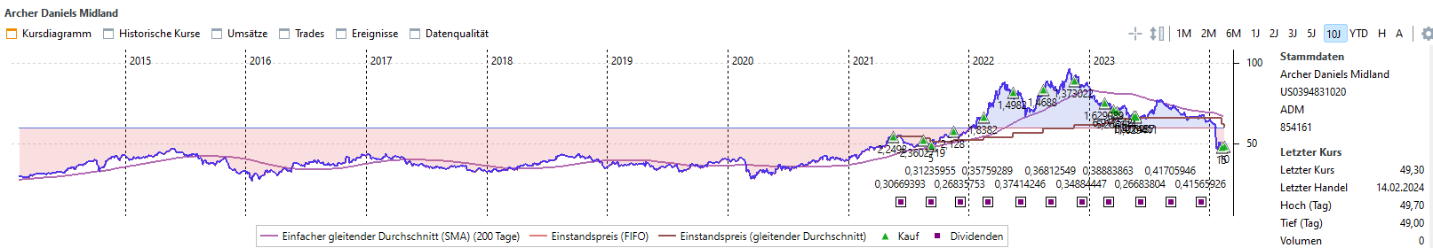 Die in New York notierten Aktien von ADM fielen am 22. Januar um 24 %, nachdem das Unternehmen am Vortag bekannt gegeben hatte, dass es seinen CFO aufgrund einer internen Untersuchung der Buchhaltungspraktiken im Zusammenhang mit seiner Nutrition-Abteilung suspendiert hatte. Auslöser der Untersuchung des Unternehmens sei eine Untersuchung der Securities and Exchange Commission (SEC) gewesen, hieß es.