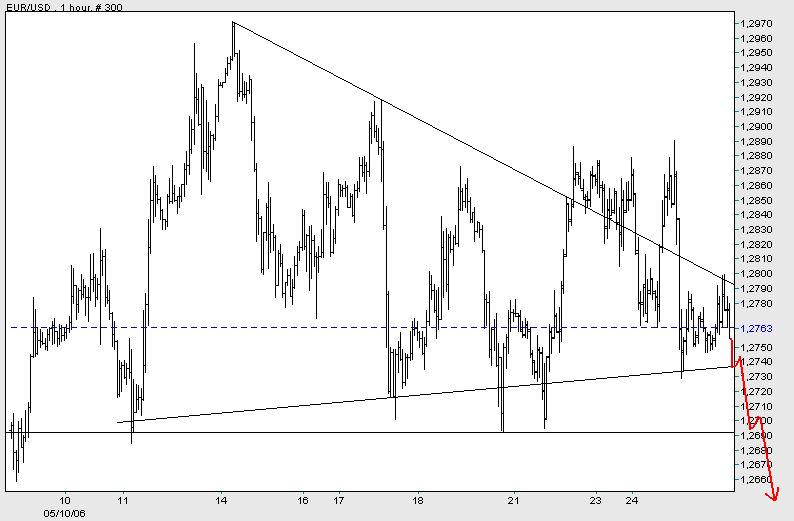 Offenbar hat um 5:00 h (MEZ) eine "US-Investmentbank" - sprich: ein Hedgefond - den dünnen asiatischen Handel genutzt, um den Euro durch Future-Käufe nach oben zu drücken und Stopp-Orders auszulösen (1. News unten). Die Trader dieser Welt sind bekanntlich "long" Euro und werden sich nicht so einfach geschlagen geben. Die Rechnung geht aber nur auf, wenn sich der Euro über 1,28 halten kann, sonst könnte es heute auch noch eine weitere Stopp-Loss-Jagd "gen Süden" geben.