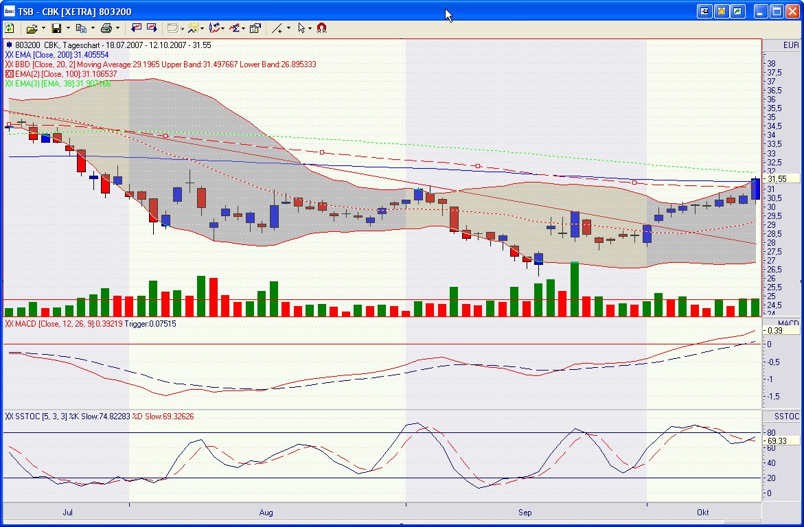 die zentralbanken haben weltweit signalisiert, probleme am geldmarkt aufgrund der subprimekrise durch zinssenkungen zu beheben. d. h. die verluste der geschäftsbanken durch subprime auf der einen seite, werden durch billige refinanzierungsmöglichkeiten auf der anderen seite wieder ausgeglichen. ein fairer kurs der coba liegt ca. bei 35. das angekündigte aktienrückkaufprogramm lässt den kurs der coba bis jahresende auf ca. 40 steigen.