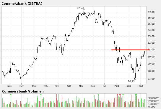 Bis dahin wird die Coba noch zigmal in Sippenhaft genommen. Kommt keine weitere Bankenkrise dazu, könnten die 27,- der tiefste Kurs gewesen sein, den wir gesehen haben.