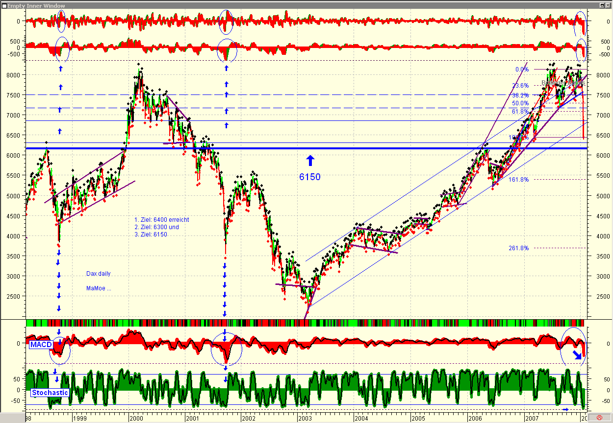 die 6150 sollte entsprechend jedem ins Auge fallen ... auch die dann erfolgte Korrektur von 2000 Daxpunkten ... nachdem diese Linie extrem umkämpft war, sollte sie auch bei einem weitern "Downer" eine recht sichere "Stütze" bieten ...