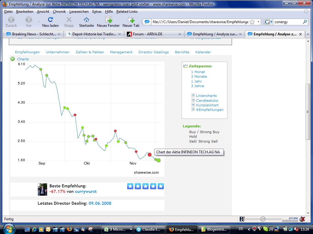 | Da hab ich auf meinem Depot 25998,00 Euro liegen, und freue mich riesig, denke, das kann nicht sein, oder doch? Doch, da steht "Augeführt"! Ohmann, fein, ich schreie, jubel, und kann eskaum fassen. Kein Anruf der Citibank, ich rufe also slbst an, O-Ton der Bank: "Es kann sich hier um einen Mißtrade handeln, aber da bekommenSie auf jeden Fall einen Anruf morgen!". Ich kann die Nacht kaum schlafen, kann mich auf meiner Arbeit kaum konzentrieren, immer den Hintergedanken im Kopf: Ist das wirklich wahr? Oder nicht? DenganzenTag kein Anruf der Bank, nachmittags komme ich nach Hause, und meine Order sind nicht mehr da, wie vom Teufel verschluckt, keine Spur mehr von meinem 102 Euro-Trade. Ich rufe erneut bei der Bank an: "Ja es wurde alles annuliert, da muss sich der Trader auf dem Parkett mit dem Komma vertan haben...." Diese Aussage reicht mir nicht, ich rufe in Frankfurt bei der Börse an, nach 3 Anrufen mit mir falsch mitgetilten Nummern endlich eine unfreundliche Frrau, die auch zunächst meinte ich sei bei ihr falsch und müsse mich an meine Bank wenden, nach langem Gerede versprach sie einen Rückruf, der tatsächlich auch kurz darauf erfolgte, "Ja, der Händler habe sich vertan, und der Händler habe das Recht, seine Trades annulieren zu lassen, es handele sich hier aber nicht um einen Mißtrade, sondern um eine "Preiskorrektur! Waaaaaaaaaaaas ? Eine PREISKORREKTUR? Leichte Korrektur um 101 Euro, sonst nichts? Warum habe ich dann nicht schlafen lkönnen, und war so aufgeregt um das Ganze??? |