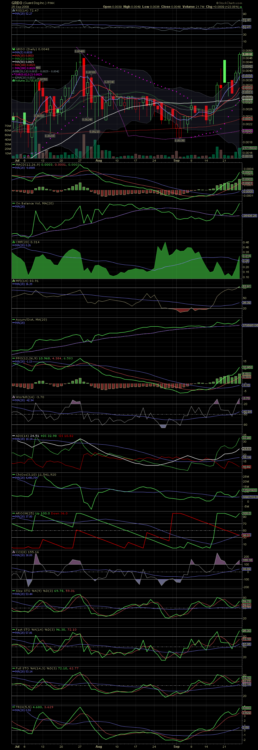 So, ein weiterer erfolgreicher Tag ist zu Ende. Ein Schlußkurs von 0,0073 , was einem Kurssprung von 52% beträgt, ist besser als gedacht ;). Es sind noch keine News draussen, aber neue Investoren haben die "schwachen Hände" die Shares abgenommen und nach einem Support von 0,006 sieht die weitere Woche sehr vielversprechend aus. Meine Einschätzung zu Morgen: in den ersten Handelsminuten werden wir noch ein paar Gewinnmitnahmen sehen und uns im Bereich von 0,0065-0,0075 einpendeln. Später werden wir dann Anlauf auf die 0,009-0,01 nehmen - wo dann wiederrum ein Widerstand ist. Sollten wir von evtl. News unterstützt werden traue ich dem Wert noch in dieser Woche Kurse von 0,015-0,02 zu (das würden dann weitere 100-150% betragen). Die allgemeine Meinung im I-Hub ist das der Kurs bis Jahresende bei 0,10$ stehen könnte. Da mach ich mal auf konservativ und sage 0,04-0,05. Aber man kann nie wissen was noch kommt, und sollte es bei AS von 650 Mil. bleiben und die Werbemaschine anlaufen ist sogar bis .... alles möglich. Ich wünsche allen Investierten den richtigen Ausstieg und allen Interessenten einen besten Einstieg und viel Erfolg,