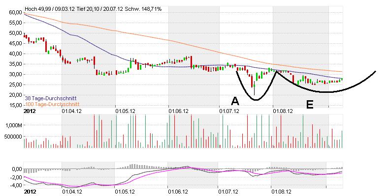 Unter 25% ist der Kurs stark gefährdet in Regionen um 1X% abzusacken.