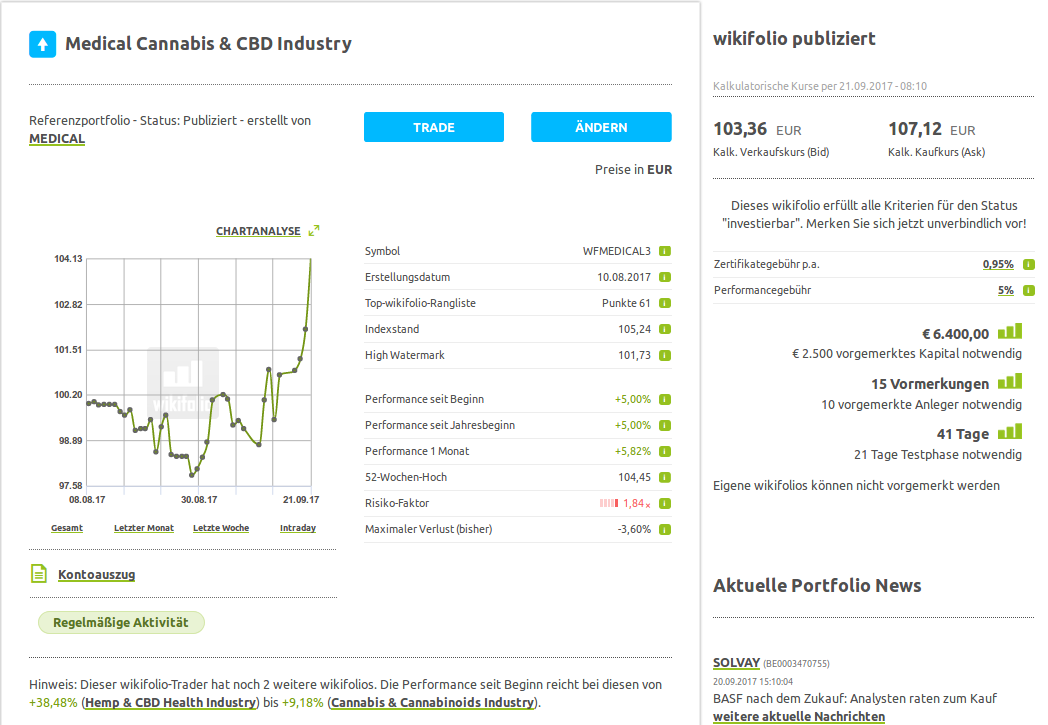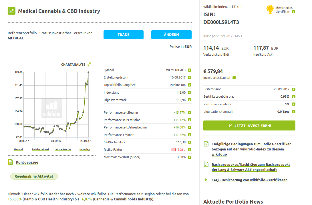 Aktuelles Portfolio "Medical Cannabis & CBD Industry" - Wikifolio (WFMEDICAL3)
