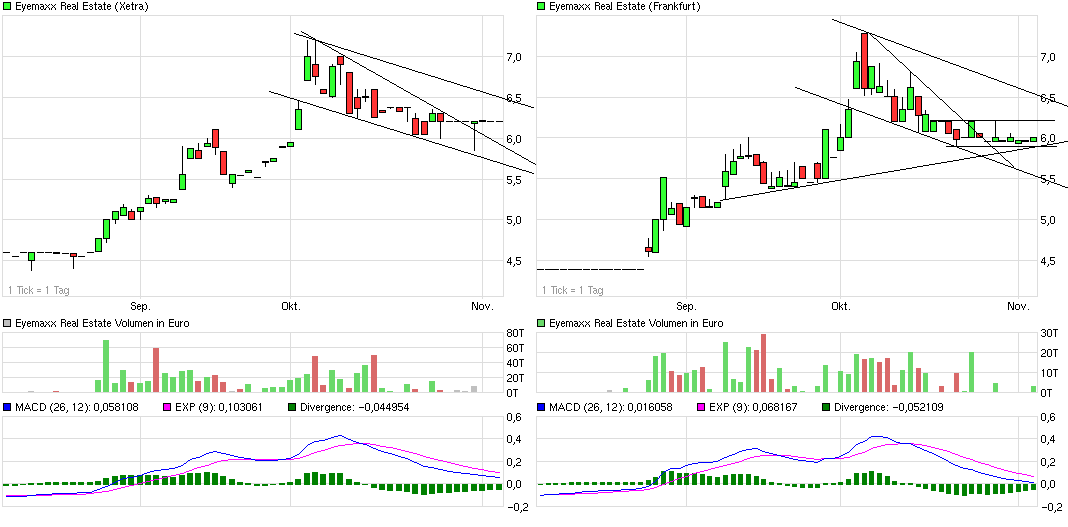 Mein geschätztes EBIT für 2012/2013: 7,25 Mio EUR Dies ergäbe beim jetzigen Aktienkurs von 5,5 EUR ein KGVe 2013 von: 2 Was läuft hier schief... ist meine Rechnung zu optimistisch??? Sehe gerade während dem schreiben, zieht der Kurs gerade wieder an... will hier nur jemand noch kräftig nachkaufen und versucht mit geringem Volumen den Kurs in den Keller zu drücken??? Für mich ist und bleibt Eyemaxx das Investment schlechthin. Ich kenne am deutschen Aktienmark keine Aktie, die bessere Aussichten vorzuweisen hat. Augen zu und durch....  |