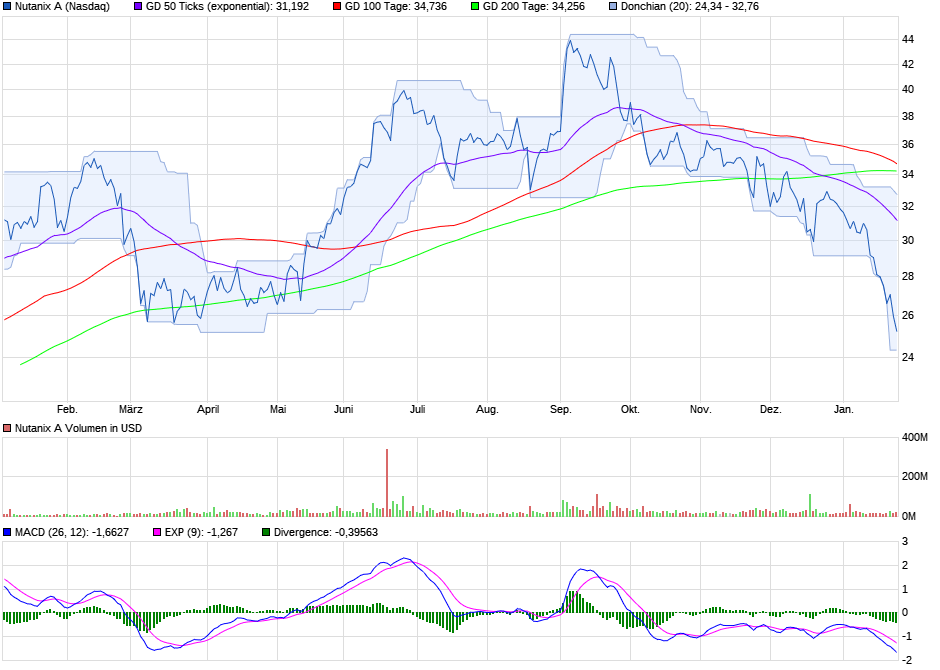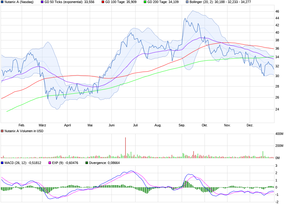 Darüber hinaus ist Broadcom in fortgeschrittenen Gesprächen hinsichtlich einer Übernahme von VMWare. Das könnte auch bei Nutanix Übernahmegerüchte anheizen - wenn dann wohl zu einem signifikanten Premium zum letzten Schlusskurs. Über eine Fülle potenzieller Käufer (IBM, Cisco, Google Cloud) wurde bereits in der Vergangenheit spekuliert.