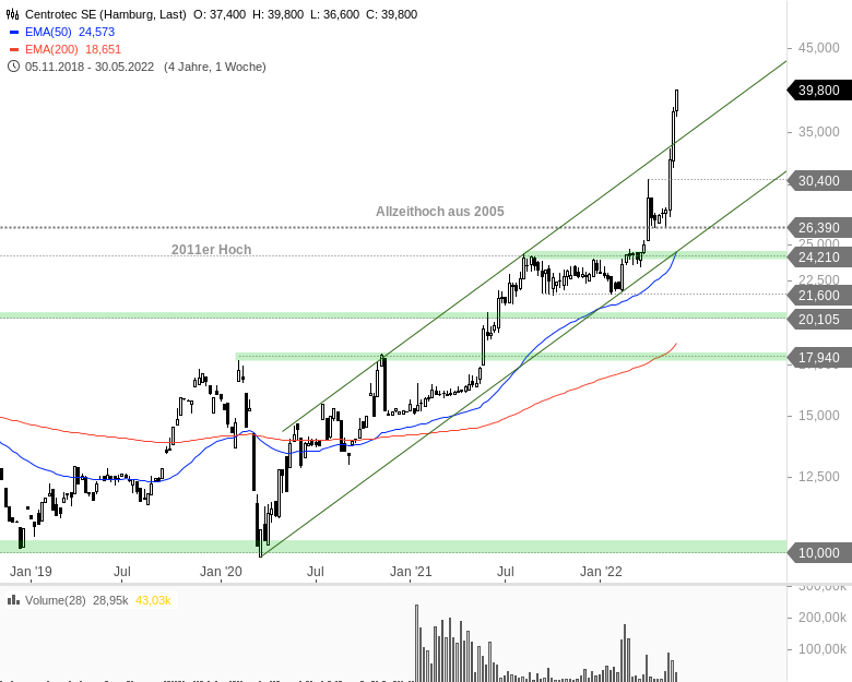 davon 5 (nicht 4) zweitstellig - Centrotec, Deutsche Telekom, Fortec, Salzgitter und YOC.