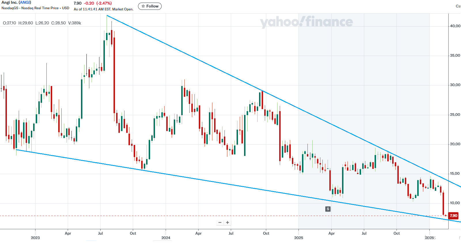 Conservative near-term outlook: Angi now expects “very modest negative growth” in Q1 (guided down 1%–3%) and low-single-digit growth for the year, citing ongoing Google SEO and network-channel pressure and a deliberate shift to grow proprietary channels through increased brand and pro marketing.