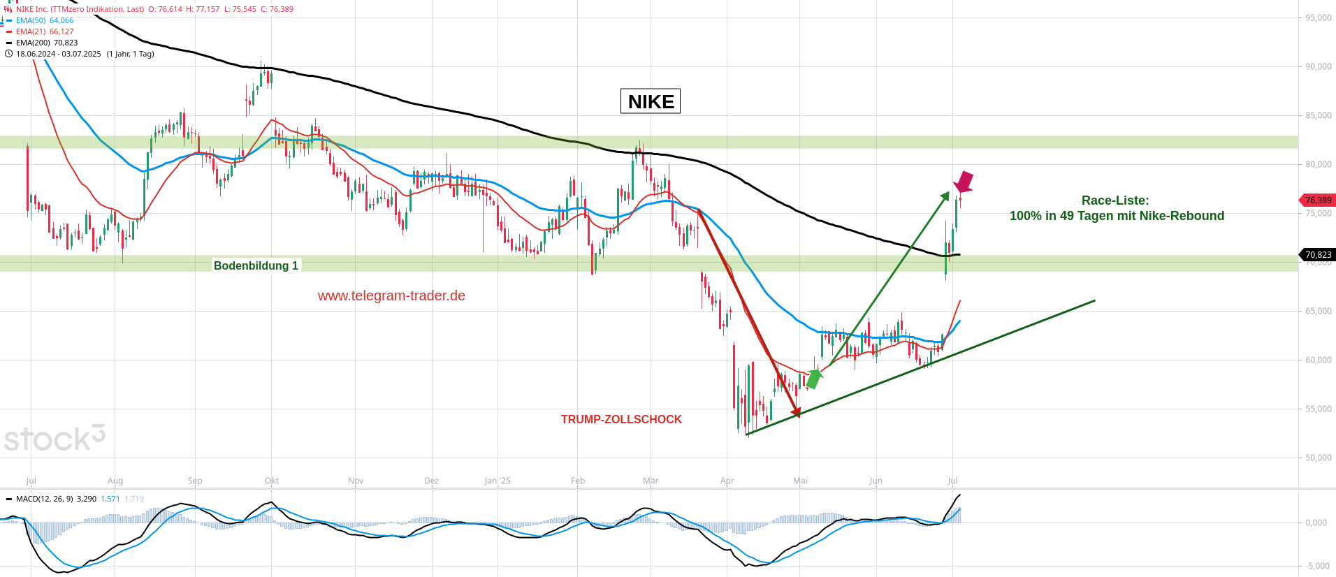 man wird die Lieferketten so umgestalten, dass der US Markt nicht unbedingt über China sondern eines der vielen anderen Ländern abgedeckt wird, in denen Nike produziert. Die haben ja schon ein sehr komplexes Produktionsgeflecht aufgebaut und über viele Jahr optimiert, die werden sicher schon intensiv daran arbeiten, diese ganzen Zollauswirkungen zu minimieren. Harley hatte damals ja auch die Produktion nach Thailand verlagert, um die EU Zölle zu umschiffen, Nike wird auch Wege finden.
