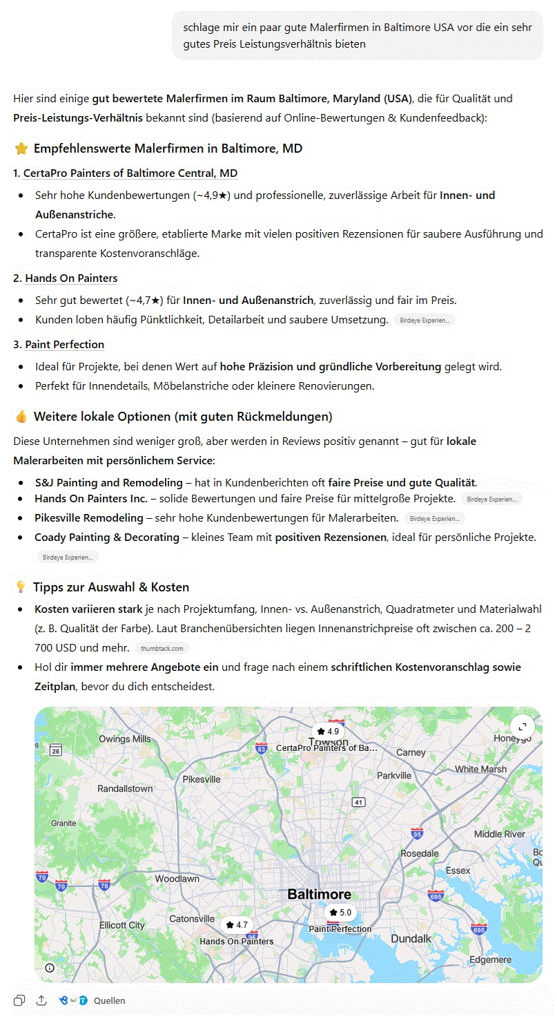 da auf Angi aktuell "nur" etwa 5% der Handwerkerfirmen gelistet sind, werden durch die KI halt alle Betriebe die irgendwo eine Bewertung haben durchforstet,