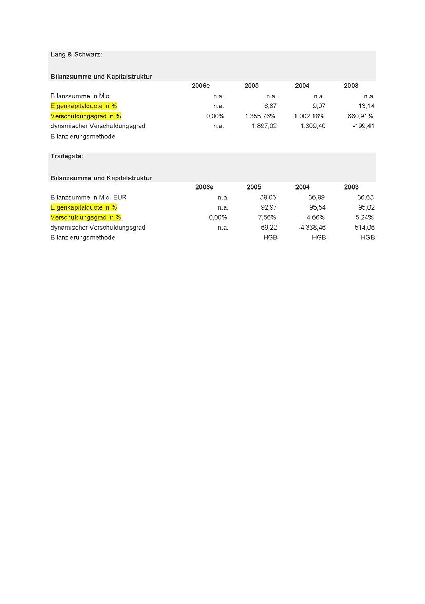 PS: ein Kursziel von 7,- Euro bei Tradegate entspricht einem L&S-Kurs bei gleichem KGV in Höhe von 48,70 Euro. Noch Fragen hierzu? Falls Tradegate mit 7,- Euro überbwertet ist, OK, ist es L&S mit 48,70 Euro auch, aber L&S steht unter 8,- im Vgl. zu 48,70 (...)