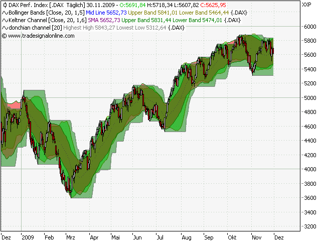 Ich schaue, dass wenn die Bollinger Bands in den Keltner Channel kommen und wieder heraussteigen(sog. Squeeze) ob es nun zu einem Kaufsignal oder Verkaufsignal beim Dnochian Channel kommt. Wenn der Donchian Channel steigt oder sinkt ohne, dass es davor einen Squeeze gab gehe ich nicht den trade ein.