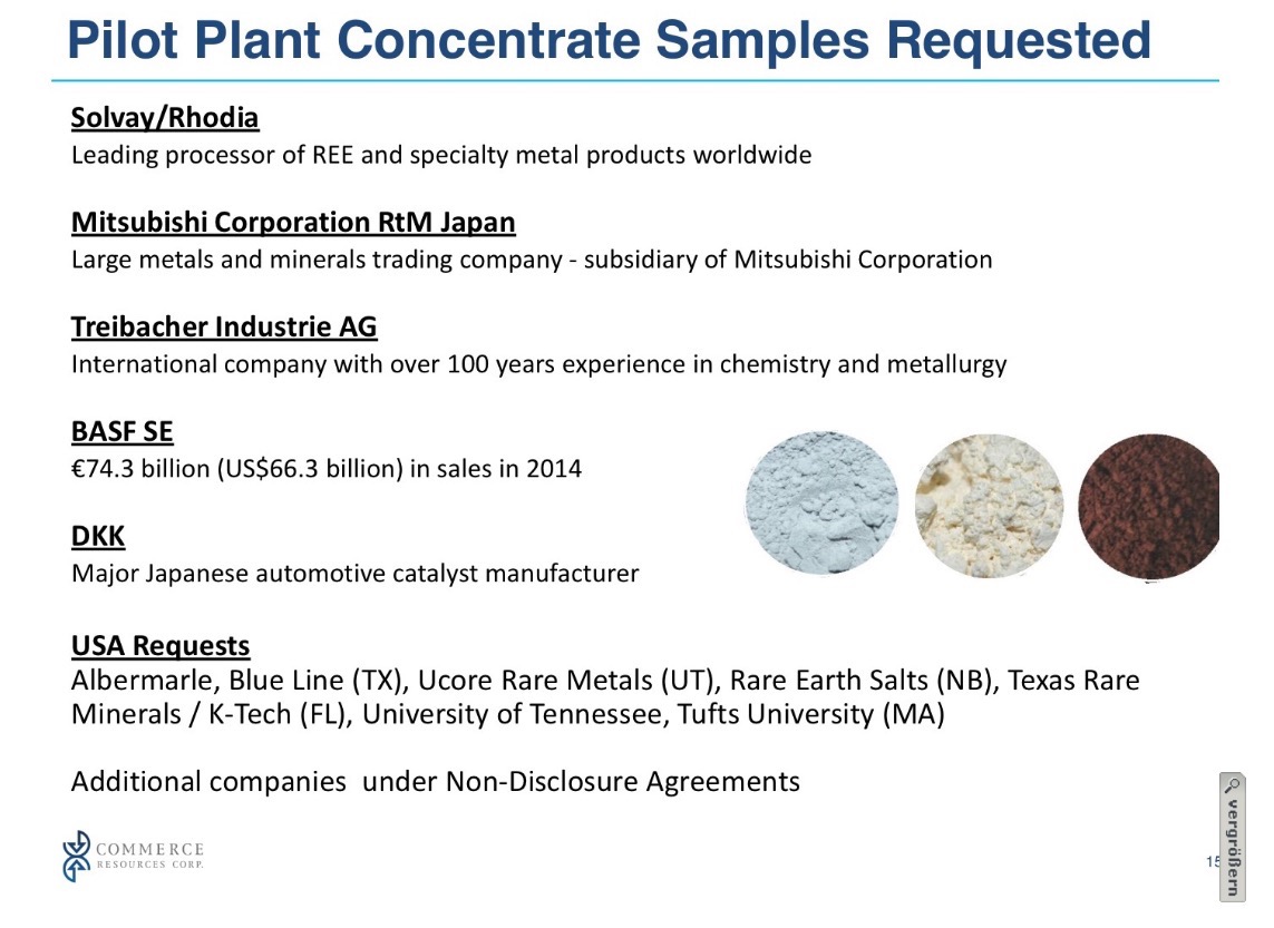 Zeit für andere Firmen, (SNC, DRA, Glencore, etc) bei Commerce Resources zu Potte zu kommen.