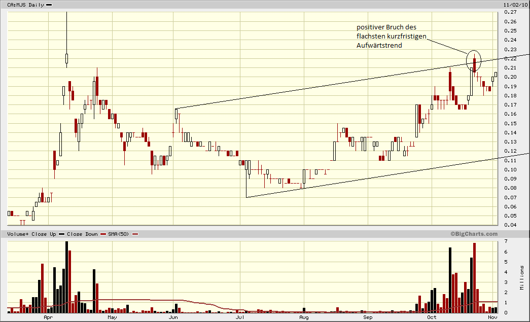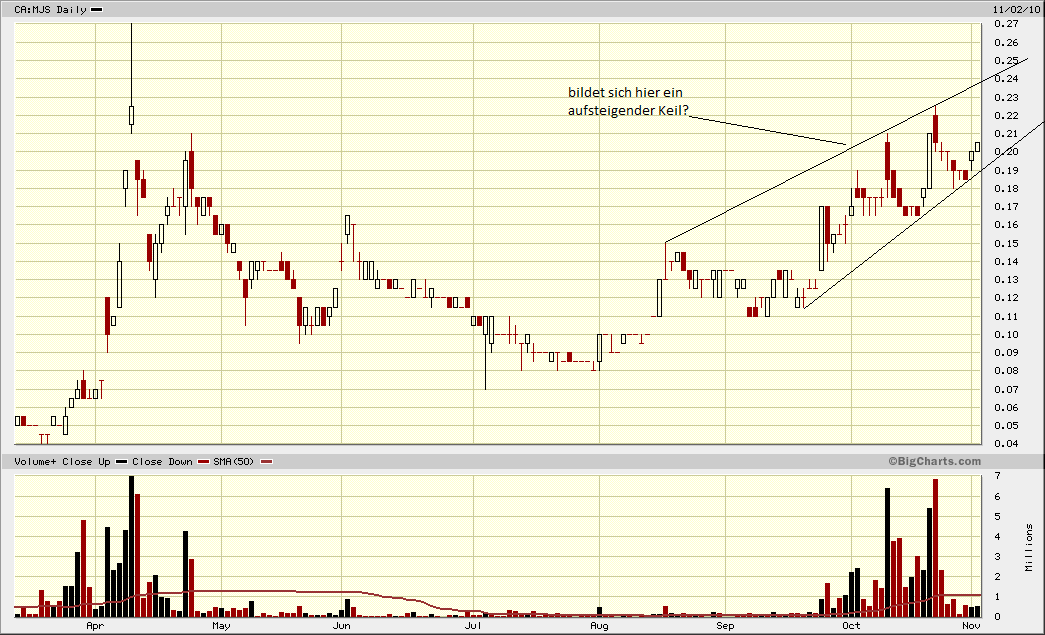 So sehe ich die Charttechnik. Für mich gibt es kein Fehlsignal! Das Chartbild aus #136 bedeutet demnach für mich: Es ist sehr wahrscheinlich, dass der Kurs in naher Zukunft wie über 0,22 CAD gehen wird, für den Bruch der Marke um 0,27 CAD gibt es sozusagen noch keine "Aussage" vom Chart! ----------- Mein Real-Depot + Einstiegskurse: MMY (A0MSJR) 0,24€ YNG (A0MVD1) 0,605€ + MJS (A0BK1D) 0,135€ |