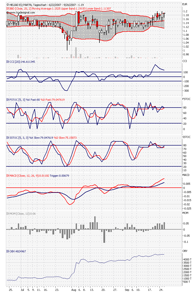 Heliad präsentiere sich derzeit in hervorragender Verfassung. Die Geschäftsentwicklung der einzelnen Beteiligungen sei überwiegend so erfreulich, dass die meisten Gesellschaften vor dem besten Jahr ihrer Unternehmensgeschichte stünden. Die Wertzuwächse bei den bereits an der Börse notierten Titeln zeige sich auch in der Gewinnentwicklung: Im ersten Halbjahr 2007 habe sich der Überschuss erneut verdoppelt. Auch der Portfolioausbau schreite zügig voran, so dass im laufenden Jahr Anteile von fünf weiteren, aussichtsreichen Firmen hätten erworben werden können. Die positive Entwicklung spiegele sich leider nicht im Aktienkurs wider, der gerade durch die jüngsten Marktturbulenzen im Zuge der Subprime-Krise deutlich gedrückt worden sei.