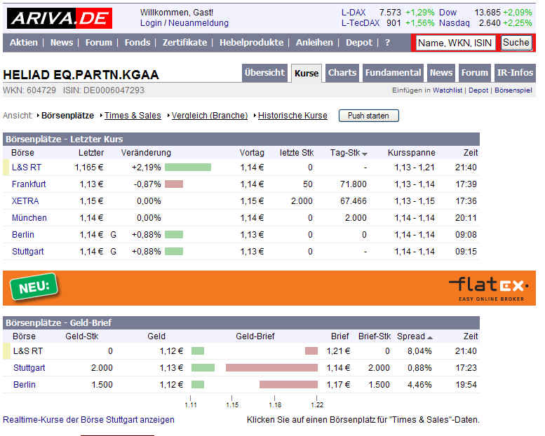Börsen: Geregelter Markt in Frankfurt (Prime Standard); Freiverkehr