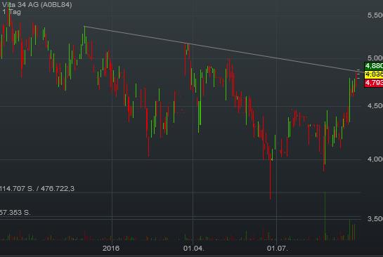 Einen schwierigen Spagat zwischen Wachstum und Rentabilität muss zurzeit Vita 34 hinlegen. Das Ergebnis ist im Aktienkurs abzulesen: In den 52 Wochen verlor der Anteilschein um rund ein Viertel an Wert . Ausgerechnet die nahende Hauptversammlung (HV) am 25. August 2016 in Leipzig könnte ein wenig Druck von der Notiz nehmen. Immerhin hat die Gesellschaft eine Dividende von 0,16 Euro pro Aktie auf die Agenda der HV gesetzt. Damit bringt es der Small Cap zurzeit auf eine Dividendenrendite von brutto fast 3,6 Prozent nicht schlecht für einen Biotechwert. Hauptprodukt von Vita 34 ist eine Nabelschnurblutbank für die Eigenvorsorge zur Behandlung späterer Krankheiten wie Krebs mit Hilfe von Stammzellen. Dabei bewegt sich Vita 34 zunehmend auf internationalem Terrain, zuletzt etwa durch die vollständige Übernahme der dänischen Nabelschnurblutbank StemCare. Doch die Integration des Marktführers im skandinavischen Raum drückt zunächst einmal auf die Ertragskennzahlen. Im Auftaktviertel 2016 knickte die Relation von Ergebnis vor Zinsen, Steuern und Abschreibungen zum Umsatz von 19,9 auf 8,3 Prozent ein. Vermutlich wird die EBITDA-Marge auch im Gesamtjahr 2016 einstellig bleiben. Mittelfristig peilt der Vorstandsvorsitzende André Gerth hier aber weiterhin ein Niveau von 20 Prozent als Zielgröße an. Klingt gut, allerdings halten die Analysten von Oddo Seydler eine derartige Renditeausbeute frühestens ab 2018 für realistisch. Näheren Aufschluss über die weitere Entwicklung geben die für den 23. August also kurz vor der HV angesetzten Halbjahreszahlen. Grundsätzlich hält boersengefluester.de die Strategie von Firmenlenker Gerth für stimmig. Daher raten wir auch, bei dem Titel engagiert zu bleiben. In gewisser Weise "Sorge" bereitet und aber weiterhin das niedrige Kurs-Buchwert-Verhältnis (KBV) von weniger als 0,6. Normalerweise wäre ein derart hoher Discount zum Eigenkapital zwar ein starkes Kaufsignal für Value-Anleger. Bei Vita 34 hängt das niedrige KBV aber wohl primär damit zusammen, dass die Börsianer der Werthaltigkeit des immerhin mehr als 30 Prozent der Bilanzsumme ausmachenden Firmenwerts (Goodwill) nicht trauen. Sollte es hier doch einmal zu Korrekturbedarf*** kommen, würde die Abschreibung zu Lasten des Eigenkapitals und damit des Buchwerts gehen. Zur Einordnung: Klammert man den Goodwill komplett aus, ergibt sich ein Buchwert von etwa 3,30 Euro für die Vita 34-Aktie. *** dazu oben #77: eine goodwill-abschreibung halte ich für nicht sehr wahrscheinlich, weil der goodwill (13,7mio) zu 94% dem prosperierenden geschäftssegment "Stammzellenbanking - Deutschland" (12,972mio) zugeordnet ist die weitaus größte position ist der firmenwert aus dem erwerb der Vita 34 AG (12,8mio); sein nutzungswert wird anhand aktualisierter 5-jahres-cashflow-prognosen (fiktive wachstumsrate 0,5%) und eines abzinsungssatzes von 12% überprüft (seiten 96, 97 des geschäftsberichts 2015, http://ir.vita34.de/download/companies/vita34/...-JA-2015-EQ-D-00.pdf ) |