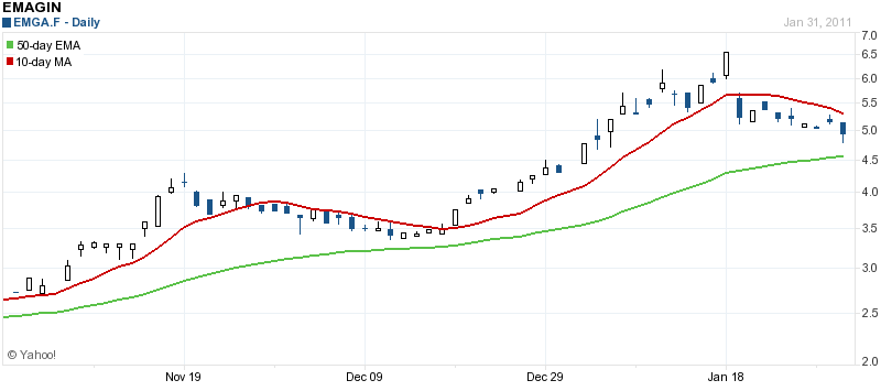 Parallel dazu habe ich Glu Mobile gekauft...ähnliche Entwicklung; ich frage michbei beiden, wann es ein guter Zeitpunkt ist zu verkaufen. Emagin macht ja immerhin schon Umnsatz/ Gewinn, wenn auch erst bei ca. 30 Mio USD / 2010 Umsatz. Glu Mobile macht nur Verluste, erlebt aber einen derartigen Hype - unlaublich.