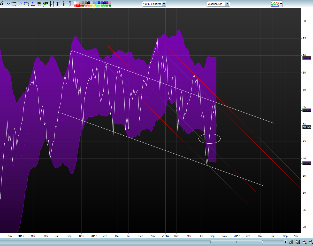 Ich bleibe aber bei meiner Strategie mit nem Call bei 9000. Ich erwarte dass von 9000 aus zunehmend eine Jahresendrally Fahrt aufnehmen wird, die uns bis Anfang 2015 bis an 10.500 ranführen wird. Und dann sollte man Kasse machen.