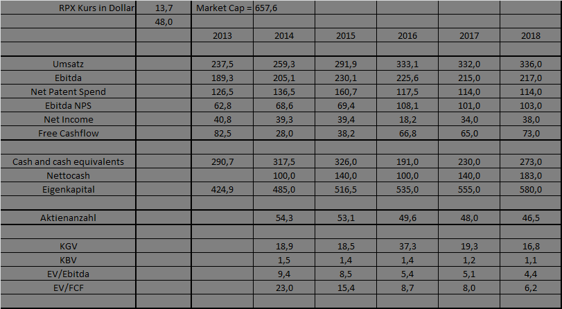 Insofern finden sich natürlich auch noch ein paar andere Aktien, die ein EV/FCF ähnlich dem von RPX haben, aber eben nur für dieses Jahr. Ob man diese Cashflows über 5 oder gar 10 Jahre halten kann, steht in den Sternen. Bei RPX bin ich mir da hingegen ziemlich sicher. ----------- the harder we fight the higher the wall |