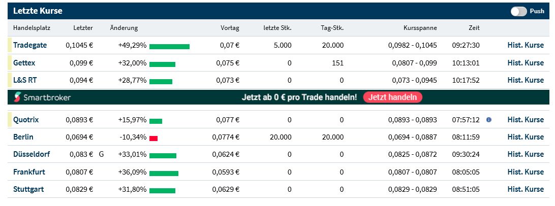 LOGAN GROUP (03380) stieg um 65,33 % auf 1,24 HK$. Es erreicht ein Intraday-Hoch von 1,28 HK$, ein 1-Monats-Hoch und ein Intraday-Tief von 0,86 HK$. Insgesamt wurden 117,46 Millionen Aktien mit einem Wert von 122,03 Millionen HK$ gehandelt. Das aktive Kauf-/Verkaufsverhältnis beträgt 63:37, mit einem Nettoumsatz von 29,82 Mio. HK$. CHINA INT'L CAPITAL CORP HK erzielt mit 3,62 Mio. HK$ den größten Netto-Responsive-Kaufumsatz bei einem volumengewichteten Durchschnittspreis von 1,011 HK$. CHINA INV INFO macht den größten Netto-Responsive- Verkaufsumsatz von 10,03 Mio. HK$ aus, mit einem volumengewichteten Durchschnittspreis von 1,067 HK$. Die Aktie ist in den letzten 4 aufeinanderfolgenden Handelstagen um insgesamt 195,24 % gestiegen. Der Hang Seng Index stieg nun um 564 Punkte oder 3,26 % auf 17.889; der Hang Seng China Enterprises Index stieg jetzt um 218 Punkte oder 3,72 % auf 6.085; der Hang Seng TECH Index stieg jetzt um 139 Punkte oder 3,99 % auf 3.631; mit einem Gesamtumsatz von 120,27 Mrd. HK$. Der SSE Composite Index stieg nun um 23 Punkte oder 0,75 % auf 3.110 mit einem Gesamtumsatz von 287,11 Mrd. RMB. Der SZSE-Komponentenindex stieg nun um 73 Punkte oder 0,66 % auf 11.213 mit einem Gesamtumsatz von 178,16 Mrd. RMB. |