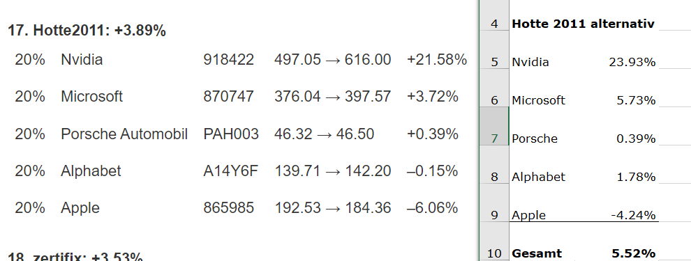 | 20% | Lanxess | 547040 | 28.37 → 24.81 | –12.55% |