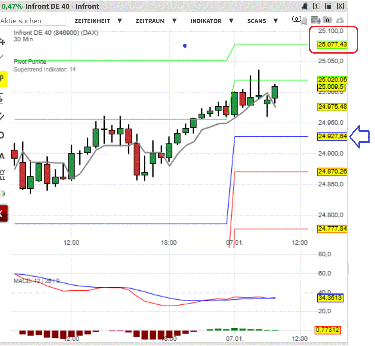 Widerstände: 25.000 / 25.030 / 25.100 Punkte
