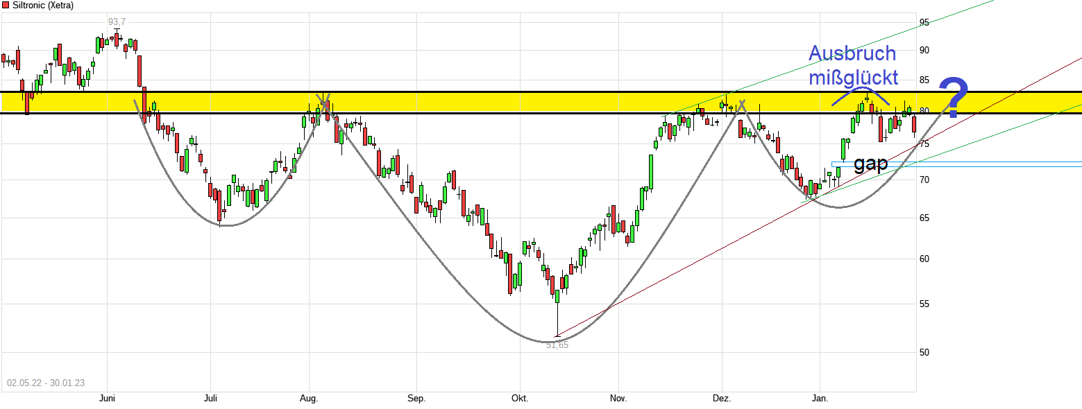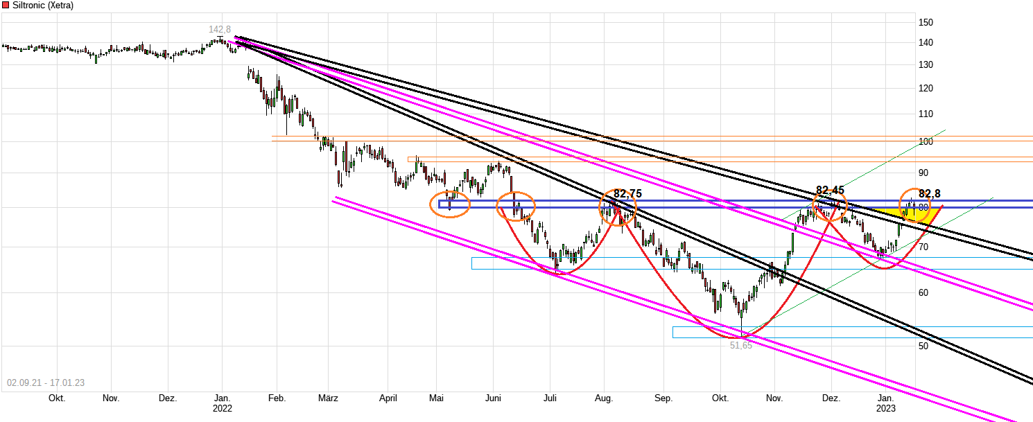 Mit einem Blick auf die Vergangenheit bei Siltronic wäre es nicht sonderlich überraschend, wenn es auch diesmal in der noch immer laufenden Baisse wieder unter 50€ gehen würde, bevor man einen Boden findet. Muß man aber wie gesagt weiter beobachten und in erster Linie schauen, wie lange die Börse jetzt weiter braucht um den Boden in der Baisse zu finden. Kann auch sein der Kelch mit der U50 geht diesmal an der Aktie vorbei. Aber angesichts der gegenwärtig hohen Dynamik nach unten beim Siltronic-Kurs, ist das vielleicht nicht als die wahrscheinlichere Variante gegenwärtig anzusehen.
