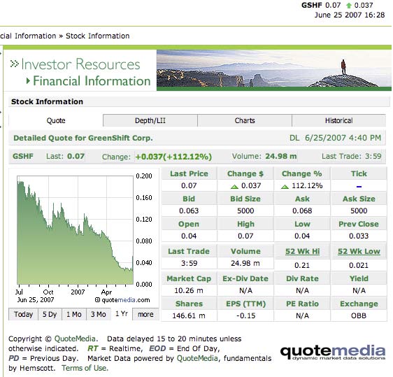 greenshift hat doch ordentlich invstiert, offenbar gut gearbeitet und eine produktpalette zusammen gestellt. so war es geplant! diese produkte werden nun an den mann/frau gebracht. und die patente werden sich auszahlen. das dauert noch jahre und dann ist die mk nicht mehr aktuelle 5,5 mio euro sondern bei 16 mio investierten auch 16 mio euro also das dreifache.(noch in diesem jahr - denn jetzt haben alle den braten gerochen. ausserdem wurde der kurs ja nachweislich zu tief gehalten. danach werden ja wohl wachstum (50 - 100 prozent - ist mein ernst und nicht unrealistisch.)und einnahmen folgen, (die hören ja nicht morgen auf) sagen wir mal 3, 5 oder 8 jahre. dann nimmt das gewinnwachstum langsam wieder ab. dann sind wir bei 50 oder 100 oder 150 mio mk. das wäre das zwanzigfache und der kurs vielleicht sogar überbewertet bei dem 25-fachem. an der börse wird schliesslich die zukunft gehandelt. mein ziel ist 1 euro und nicht der morgige tag - aber jedem natürlich das seine - und die restl. 25 prozent in dieser woche nehme ich sozusagen automatisch mit, genauso wie die kommenden kursrücketzer. ich bin schon steuerfrei bei greenschift und so loooooooooooong. habe auch früher schon gezockt mit gs - mit guuuuutem gewinn - und aktuell plus minus null, also durch die früheren zockgewinne habe ich meine long verluste (ek-0,12) schon verdient gehabt, und ab heute bin ich wieder (insgesamt) im plus. habe vor über einem jahr gekauft und bis heute gehalten - und morgen immer noch und übermorgen auch. ich will sichere 100 prozent - jedes jahr und nicht nur heute. ich habe ja nie an das teilweise rumgeheule hier im forum geglaubt, sondern an meine eigene, kleine junior-analyse. zwischendurch habe ich mal kurz gedacht-getzweifelt ob aus scheisse geld machen wirklich funktioniern kann und bin überzeugt das es geht. ausserdem war ich massiv im verlust mit dieser posi-so eine schei... -aber man hat ja gelernt, das man aus schei... geld machen will.