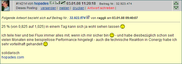 Stück Geld Kurs Brief Stück 58,95 Aktien im Verkauf 1.745 58,91 Aktien im Verkauf 103 58,89 Aktien im Verkauf 2.640 58,85 Aktien im Verkauf 5.600 58,80 Aktien im Verkauf 1.050 58,79 Aktien im Verkauf 7.979 58,75 Aktien im Verkauf 2.000 58,72 Aktien im Verkauf 413 58,71 Aktien im Verkauf 347 58,69 Aktien im Verkauf 3.168 Quelle: [URL] http://aktienkurs-orderbuch.finanznachrichten.de/DAI.aspx [/URL] 1.300 Aktien im Kauf 58,65 413 Aktien im Kauf 58,63 1.600 Aktien im Kauf 58,62 230 Aktien im Kauf 58,61 500 Aktien im Kauf 58,60 834 Aktien im Kauf 58,59 75 Aktien im Kauf 58,58 35 Aktien im Kauf 58,55 1.160 Aktien im Kauf 58,53 711 Aktien im Kauf 58,52 Summe Aktien im Kauf Verhältnis Summe Aktien im Verkauf 6.858 1:3,65 25.045 |