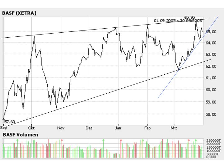 Doch selbst bei einer weiteren Verzögerung im Falle Engelhard, sei der Wert interessant, da nach Überschreiten der 66-Euro-Marke erheblicher Kursspielraum nach oben bestände, so dass man zum Einstieg bei BASF rät, was natürlich auch auf Grund des errechneten KGV von etwa 10 eine gute Empfehlung ist.