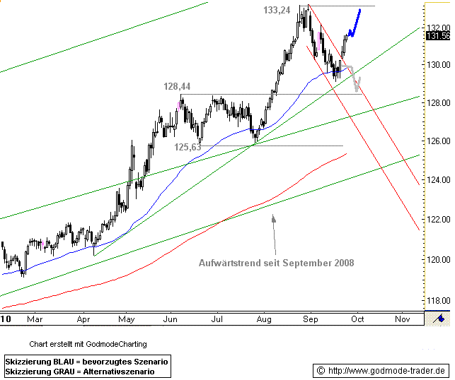 WAVEs und WAVEs XXL auf Euro-Bund-Future Art WKN BP Knock-out Laufzeit Geld Brief Hebel Call DB8LMY 125,50 125,50 02.09.2010 4,33 4,36 29,75 Call DB8LMX 125,00 125,00 02.09.2010 4,83 4,86 26,69 Put DB8LNJ 132,50 132,50 02.09.2010 2,94 2,97 43,67 ----------- Mit genug Insiderinformationen und 1 Mio $ kann man schon in 1 Jahr ruiniert sein. (Warren Buffett) |