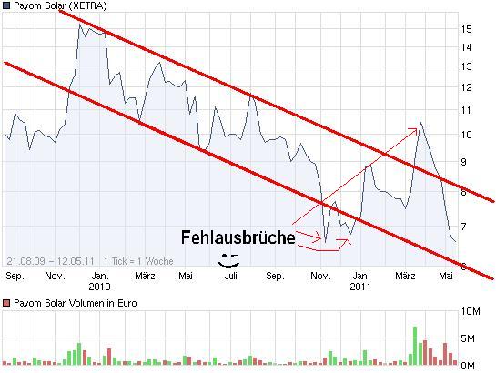 Sofern Du mit "Traden" speziell Daytrading meinst, stimmen Deine Aussagen jedoch ebenfalls nicht. Insbesondere Dein Q-Cells-Beispiel hinkt nämlich arg: Wenn man bei Q-Cells nach jedem stärkeren Kursrückgang auf eine Gegenreaktion gesetzt hat, dürfte man kräftig Geld verloren haben. So ging es z.B. vielen, die Anfang Oktober 2010, nach dem Fall von ca. 5€ auf ca. 4€ gedacht hatten "es kann ja nicht nur bergab gehen". Das gleiche galt im weiteren Verlauf beim kurzen "Halt" bei 3,50€, der ebenfalls nicht die von vielen erwartete (bzw. erhoffte) Gegenreaktion ausgelöst hat. Erst bei 2€ waren letztlich alle Shorties so satt, daß es wieder nach oben gehen konnte. Aber zu behaupten, daß es man diese Aufwärtsbewegungen fest einplanen kann, ist Quatsch. Und im Nachhinein den Chart anzuschauen und zu sagen, da und da und da hätte man auf Gegenreaktionen setzen können, deshalb sind die Chancen dafür immer gut, ist noch größerer Quatsch!