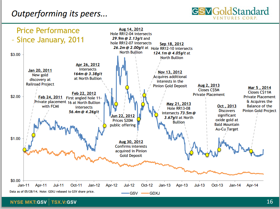 ÜBER GOLD STANDARD VENTURES - Gold Standard ist ein fortgeschrittenen Goldexplorationsunternehmen, das sich auf Bezirksebene Entdeckungen in Nevada. Vorzeigeprojekt des Unternehmens, das Eisenbahn-Pinion-Gold-Projekt, innerhalb des produktiven Carlin Trend liegt. Die jüngste Trieb Goldlagerstätte Akquisition bietet GSV eine potenzielle kurzfristige Entwicklungsoption und festigt 115km2 führenden Landpaket des Unternehmens in der Carlin Trend. Gold Standard wird zum Aufbau NI 43-101 konforme Goldressourcen sowohl an der Oberfläche in der Nähe, Oxid-Gold-Lagerstätte Ritzel und die klassische Carlin-Stil, North Bullion Goldlagerstätte im Jahr 2014 bewegt.