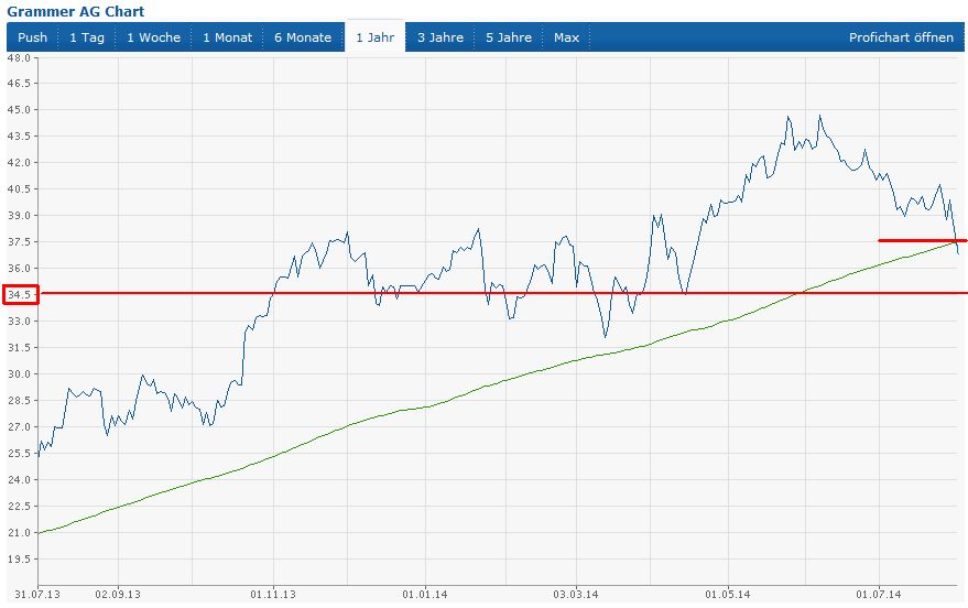 Ebenso hat Warburg am 10.07. das Kursziel von 47 EUR nach Rücksprache mit Grammer bestätigt (nach Befürchtungen um eine mögliche Gewinnwarnung). Fundamentale Gründe für Kurseinbrüche gibts also offensichtlich eher wenig...