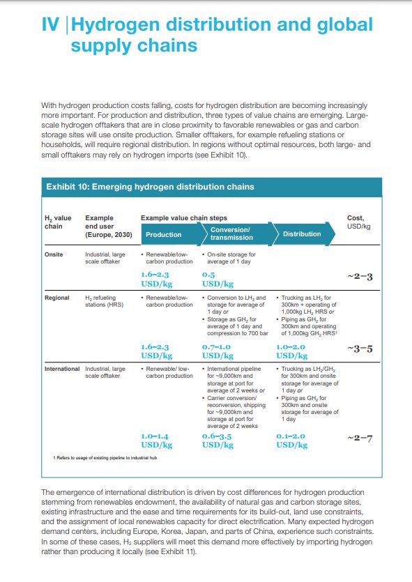 "... Größere Entfernungen können per Schiff zurückgelegt werden, wobei der Wasserstoff umgewandelt werden muss, um seine Dichte zu erhöhen. Es gibt zwar mehrere potenzielle Wasserstoffträgeransätze, aber drei kohlenstoffneutrale Träger - flüssiger Wasserstoff (LH2), flüssig-organische Verbindungen (LOHC) und Ammoniak (NH3) - gewinnen am meisten an Zugkraft. Die Endanwendung des Wasserstoffs muss berücksichtigt werden, um die kostenoptimalste Lösung zu bestimmen ..."