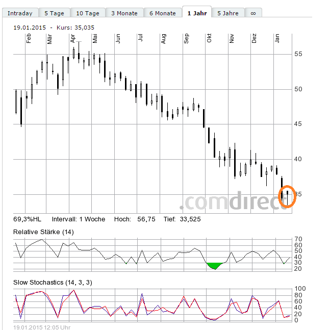 Ich habe 2 Depots bei meiner Bank. Eine für meine Langfristanlagen, bei der ich ganz selten umschichte und ein 2. Depot für Daytrading und Mittelfristanlagen(aktuell nur Lanxess+Metro) Ich investiere auch nur in Aktien aus dem DAX und mit wenigen Ausnahmen MDAX,TecDAX. Metro, Nordex und Aixtron sind oder waren hier für mich sehr interessant. Meine Strategie ist es immer billig(Panikwert) in eine Aktie einzusteigen und sie teuer(Gierwert) wieder zu verkaufen. Das Unternehmen muß hoch kapitalisiert sein und auch für die Zukunft interessante Produkte anbieten können. Wäre ich vom Turnaround nicht überzeugt, spekuliere ich keinen Ct. auch nur für 5 Minuten. Lanxess möchte ich nicht als "ehemals erfolgreiches Unternehmen" titulieren, dafür generiert es immer noch akzeptable Gewinne und Dividende. Ich schaue mir die Kursentwicklung der letzten 10 Jahre an und untersuche anschließend die stark gefallenen Aktien nach den Gründen für den Verfall. Wichtig ist für mich dann, ob sich die Unternehmensführung dem Problem angenommen hat. Ab hier investiere ich dann in das Unternehmen übere OS als daytrader spekulativ. Steigt der Kurs, nehme ich kurze Zeit später die Gewinne mit. Sinkt der Kurs, überlege ich Verluste zu begrenzen, je nach Marktlage. Wenn nicht, wie im vorliegenden Fall, kaufe ich idR noch 2x 33 % nach. HY3CML ist der OS CALL. Wichtig war hier für mich eine Laufzeit größer 1 Jahr. OS muß weit im Geld liegen und sehr kleiner Spread mit Delta um 0,65 haben. Sollte ich den Schein in den nächsten 2 Monaten verkauft haben, würde ich bei einem Neueinstieg in Lanxess einen neuen OS-Schein auswählen, denn wenn das Laufzeitende nur noch 3-9 Monate sind, schmilzt für mich der Zeitwert wie ein Schneeball im Wüstensand. Unter 3 Monaten LZ möchte ich ein OS nie besitzen! Am 2.1.15 hat Dodge & Cox und BlackRock am 13.1.15 jeweils die Schwelle von 5 % am Unternehmen überschritten. Die Kurse werden nicht im Forum oder gar in der BRD für Lanxess gemacht, sondern im angloamerikanischen Raum. Selbstverständlich muß man an der Börse mit allem rechnen, also hier auch mit einem unterschreiten der 30 Marke. Selbst 15 sind nicht ausgeschlossen, wenn es eine Heuschrecke darauf anlegen würde. Lanxess ist lächerliche ca. 3,2 Mrd. Wert und alleine BlackRock verwaltet ein Vermögen von alleine über 4 Billionen $. Die derzeitigen Parameter für Lanxess sprechen daher eher für eine andere Richtung! An der Börse muß aber jeder seine eigenen Gedanken haben und auch je nach Risikofreude seine eigene Strategie entwickeln. Ich persönlich bin extrem Risikoaffin und verkrafte auch mal locker -40 % in OS! Mein Schein hat einen relativ kleinen effektiven Hebel und trotzdem geht es bei Basiswert - 2 % hier an einem Tag mal locker 15 % nach unten. Kommt nicht jeder mit klar!
