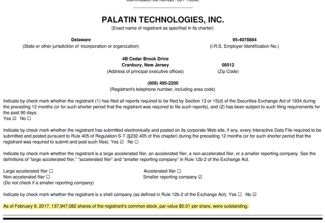 am 31.12.2016 waren "outstanding" = 133.423.837 mio ("issued and outstanding 133,423,837 shares as of December 31, 2016"