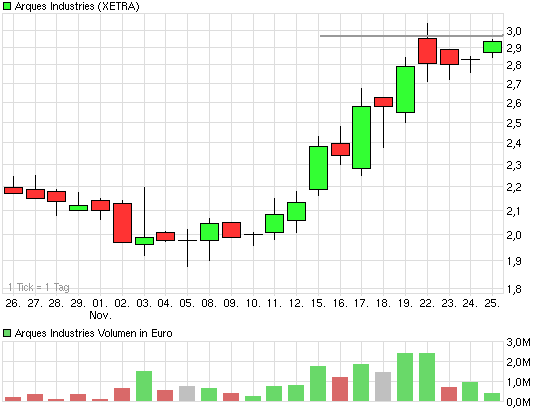 die Pressemitteilung von Arques...Neben den Stichwörtern "Ende des Jahres 2010 SCHULDENFREI" und zu Beginn des Jahres 2011 "Liquiditätsbestand von 40 Mio Euro", liegt die Betonung liegt am Ende des Textes auf "werden im Jahr 2011 einen weiteren Anstieg des Umsatzes und eine gleichzeitige weitere Steigerung der Profitabilität bewirken. "