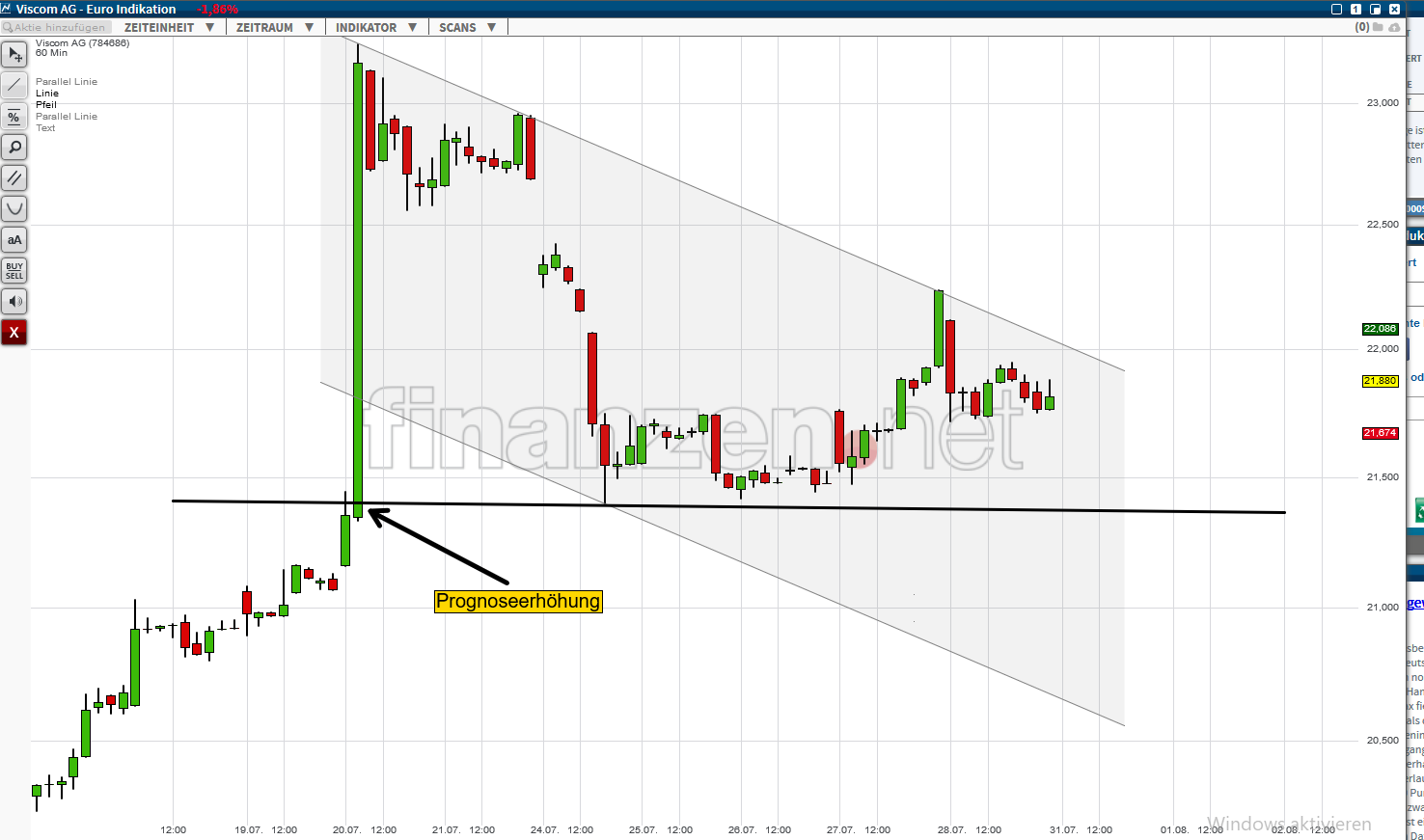 Das Q2 EPS dürfte nach den vorläufigen Zahlen wohl bei um die 0,23 € liegen. Zusammen mit dem Q1 EPS von 0,21 € würde sich somit ein Halbjahres EPS von 0,44 € ergeben. Das 2. Hj. wird nach der neuen Guidance noch besser ausfallen sollte als das 1. Hj.. Mittelwert Guidance ergibt ein EBIT im 2. Hj. von 7,7 Mio. € gg. dem 1. Hj. EBIT von 5,7 Mio. €. Rechnet man hier mit einer Steuerquote von 30%, dann würde beim Mittelwert der EBIT-Guidance ein 2. Hj. EPS von 0,60 € raus kommen. Also ein Jahres EPS von 1,04 €. Wohlgemerkt beim Guidance-Mittelwert. Da Viscom aber im 1. Hj. schon eine EBIT-Marge von 14% hatte und das 2. Hj. beim Umsatz um gut 20% stärker sein wird wie das 1. Hj. laut der neuen Umsatzguidance dürfte Viscom wohl eher an die obere EBIT-Margenguidance heran kommen. Ich denke mal ein EPS > 1,10 € sollte in diesem Jahr gut rausschauen können.