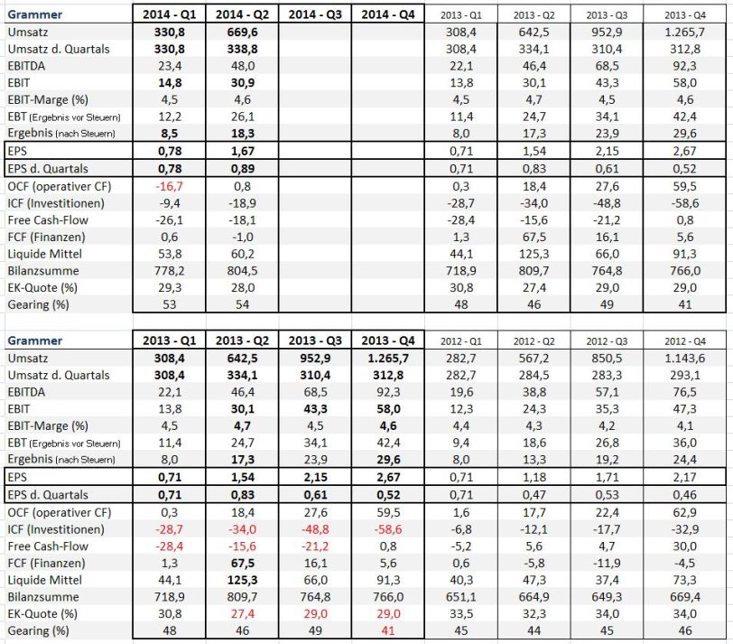 Auch im Gesamtjahr 2014 werde die Automotive-Sparte, das größere der beiden Geschäftsfelder, dadurch gebremst, hieß es. Die Erweiterungs- und Umbauprojekte schafften aber die Voraussetzungen für nachhaltiges profitables Wachstum, betonte Vorstandschef Hartmut Müller. Für 2014 bekräftigte Grammer die Prognose, wonach das Ebit (2013: 58 Millionen) stagnieren und der Umsatz auf mehr als 1,3 (1,27) Milliarden Euro steigen soll.