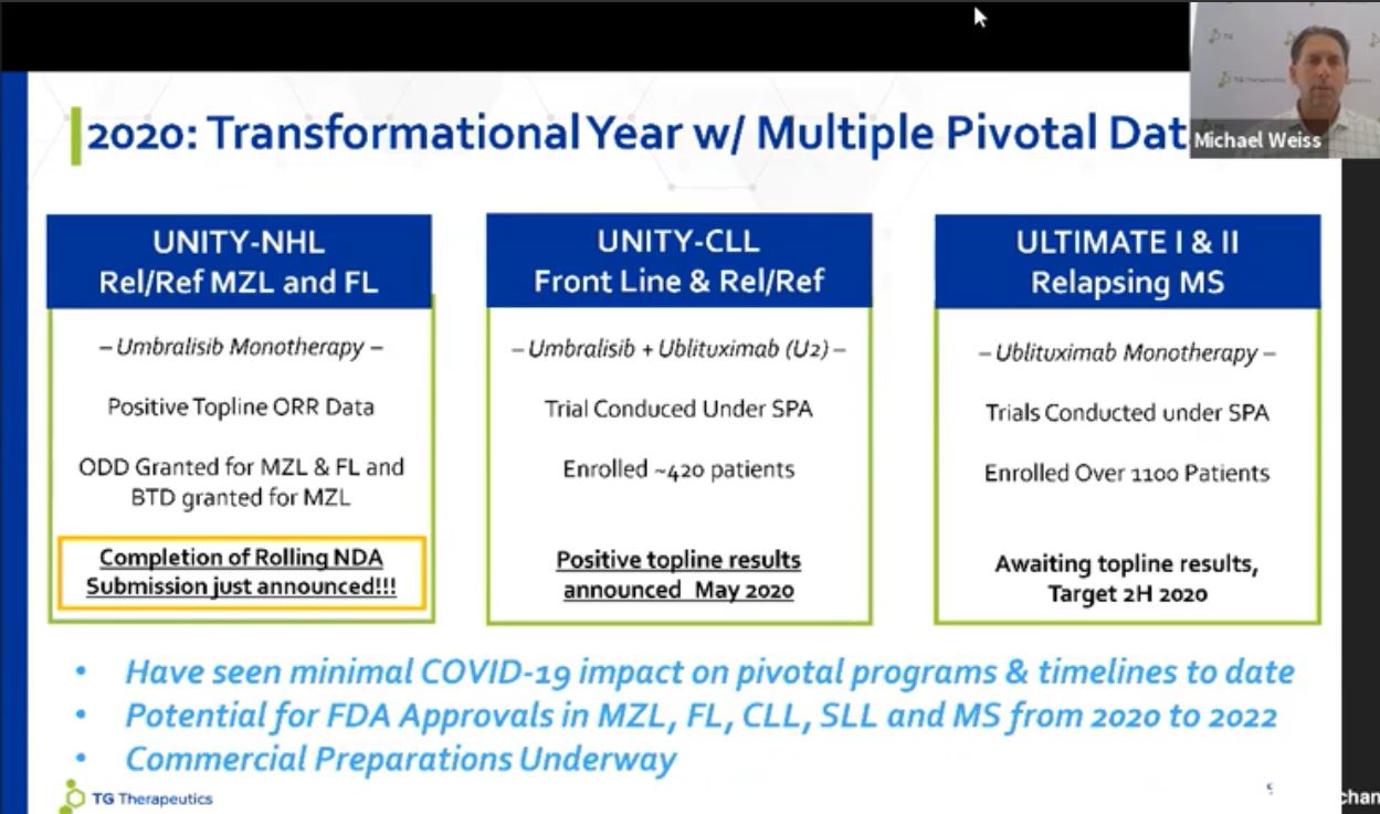 Michael S. Weiss, Executive Chairman und Chief Executive Officer des Unternehmens, kommentierte: "Nach den positiven Topline-Daten der UNITY-CLL konnten wir unsere Bilanz mit $60 Millionen aufstocken, einschließlich $40 Millionen, die unaufgefordert von einem hochrangigen Biotechnologie-Investor bereitgestellt wurden. Wir schätzen ihr anhaltendes Vertrauen in TG und unsere Bemühungen, Patienten mit B-Zell-Erkrankungen die bestmöglichen Behandlungsmöglichkeiten zu bieten, sehr. Wir freuen uns auf einen spannenden Rest des Jahres 2020 mit vielen wichtigen bevorstehenden Meilensteinen, einschliesslich des Abschlusses unseres rollenden NDA-Antrags für Umbalisib bei zuvor behandeltem Randzonen-Lymphom und follikulärem Lymphom, Topline-Daten aus dem ULTIMATE-Programm zur Evaluierung von Ublituximab bei Multipler Sklerose sowie eines Zulassungsantrags für das Kombinationsregime von Umbalisib und Ublituximab bei chronischer lymphatischer Leukämie, das bis Jahresende angestrebt wird".