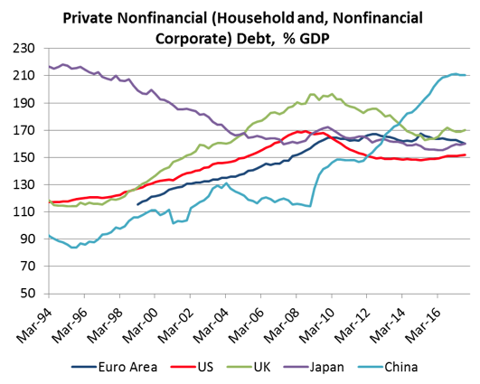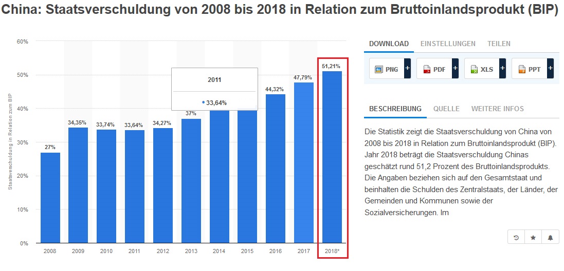 Es gibt auch noch den Terminus Gesamtschuldenquote. Der gibt die Summe aus staatlicher und privater Verschuldung. Seit 2016 ist die chinesische Gesamtschuldenquote höher als die der USA.