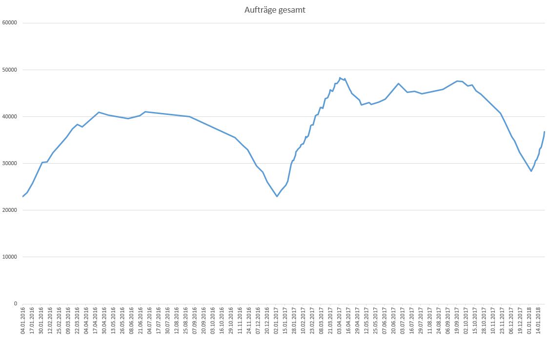 1. Nach meinen Stichprobenbetrachtungen des Branchenbuches lagen die Zuwächse bei den kostenpflichtigen Partnerpaketen in Q4 zwischen 750 und 900. Das wäre ein fast doppelt so hoher Zuwachs wie im letzten Jahr mit ca. +400, was für ein Q4 auch schon ein sehr guter Wert war. Damit ist schon einmal ein sehr wichtiger Grundstein für den Umsatz 2018 gelegt. Anders als bei Werten wie Lotto24 ist bei MyHammer die Preisstruktur so aufgebaut, dass man mit Laufzeitpaketen mit monatlichen Fixgebühren eine recht hohe Planungssicherheit hat und Maßnahmen wie die TV Werbung in 2017 einen lang anhaltenden Effekt haben.