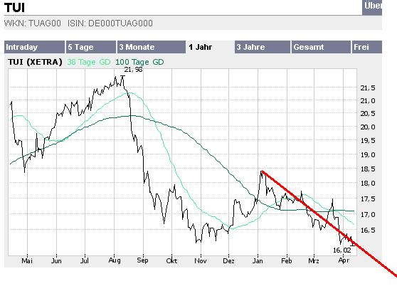 Wie weit TUI noch fällt, weiß ich nicht. Bei 15,50 müßte charttechnisch gesehen