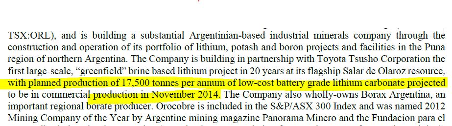 Auch wenn die Lebensdauer der Mine von Olaroz nach dem aktuellen Minenplan bereits 40 Jahren könnte es sinnvoll sein, um die Ressourcen noch weiter erhöhen, da erwarte ich Orocobre, seine Produktionsrate zu erweitern. Sollten Folgebohrungen bestätigen die Kontinuität der Lithium-tragenden Zonen, ich denke, es würde sehr viel Sinn, die Produktionsrate auf mindestens 30.000 Tonnen pro Jahr zu erweitern. Da die Kapitalintensität einer Erweiterung wäre sehr gering und die Amortisations relativ schnell sein, scheint Olaroz Projekt Orocobre zur perfekt positioniert, um jeden Anstieg der Nachfrage nach Lithium zu erfüllen.
