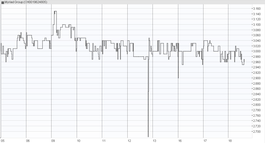 Der Handysoftware-Hersteller MYRIAD GROUP sorgte auch in den letzten zwei Wochen für regen Gesprächsstoff. Da vom Unternehmen keine News bekannt wurden, die den zwischenzeitlichen Kursrückgang auf CHF 3 gerechtfertigt hätten, brodelte es gewaltig in der Gerüchteküche.