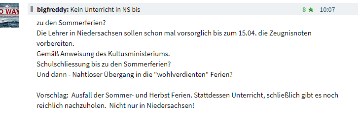 @all Hoffentlich bleibt der Deutsche noch gelassen bei der Aus - und Eingangssperre, die soll sich ja auch bekanntlich auf die Psyche sich auswirken. Je länger die Sperren und Verbote dauern, umso mehr ausarten kann es. Trotzdem, also Vorsicht. Da gibt so einige durchdrehende Nachahmer, in Münster z.B. damals am Kiepenkerl, dieser Auto-high-jacker, war beispielhaft.Wird dann aber leider wieder auf Corona geschoben....