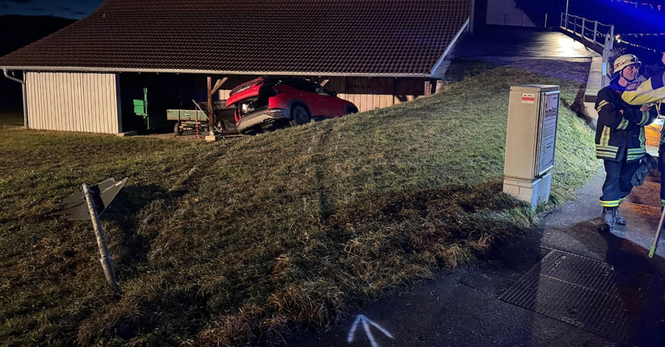 Tettnang: Auto kracht in Scheune